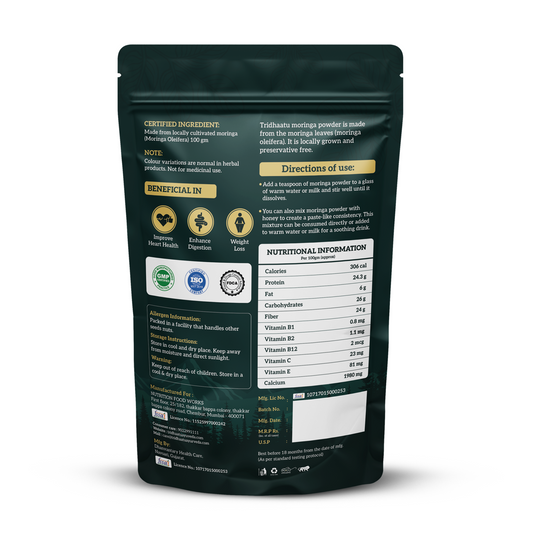 Pure Natural Moringa Organically Cultivated Moringa Leaf Powder | Metabolism Booster | Protein Rich Organic Superfood for Energy, Immunity & Nutritional Support – Rich in Vitamins & Antioxidants, Non-GMO, Vegan 100 gram